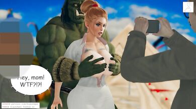 A stranger in a life-size orc doll fucked a hot mom by beating her husband.
