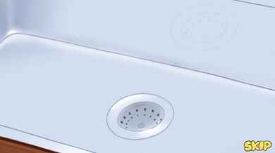 Vanilla the rabbit, doing chores in the kitchen,