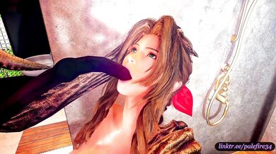 Aerith Gainsborough experiences double penetration - oral and vaginal at the same time. But what is that creature pumping inside her?