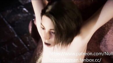 A scantily clad woman is in a desperate situation as she finds herself in the grasp of a writhing, tentacled creature. With no other option, she decides to ride it out and use her body weight to control its movements.