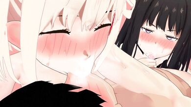 Takina's blowjob and Chisato's kissing make them both cum hard!