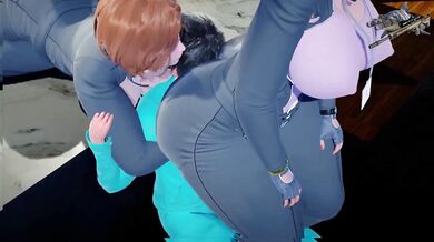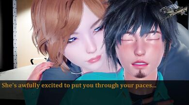 Two sultry women, both seductively dressed and with a hint of flirtatious behavior towards the newly appointed office administrator. They each have a unique approach in showing their appreciation to his arrival - one being more bold and direct, while the other takes a more subtle yet alluring route.
