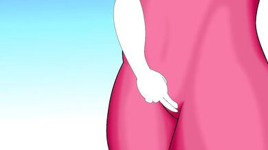 In the hentai porn video, the male character can be seen grabbing the female character's breasts in a passionate embrace.