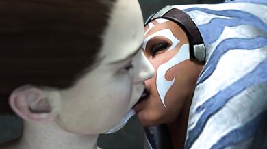 Ahsoka Tano and Padme helping Vader back from the dark side of the force.