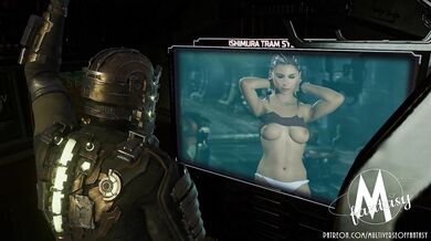 Isaac is having a hallucination of Kendra performing a striptease on a holographic screen. The pose and loop are short, and the models used are by Hantsgruber and AkkoNSFW.