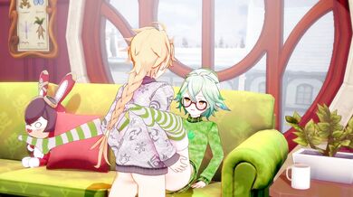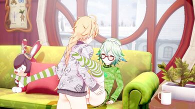 [Sexy Momokos] Yoimiya Gives Lumine a Blowjob