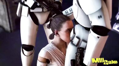 This hentai porn video features Rey from the Star Wars Episode VII: The Force Awakens movie, who is depicted as having sexual intercourse with a storm trooper. The animation is 3D and created using Source Film Maker (SFM) software by an artist known as M1llcake. The video can be found on M1llcake's Tumblr page.