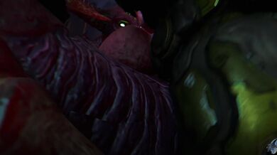A male character, presumably the Baron of Hell, is depicted engaging in sexual intercourse with a female partner. The act is described as being tight, indicating that the woman's vagina is constricting around the man's penis, creating a pleasurable sensation for both parties involved.