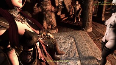 Summary: A Breton thief arrives in Falkreath for a burglary job at a mill outside town. Will she successfully steal the miller's comically over-sized jewel and skip town? Or will she be spotted by the first guards she comes across and end up in the Jarl's service to avoid an overly harsh sentence, whereupon she will meet an assortment of characters including his mysterious Daedric succubus companion? I don't know, the suspense is killing me!