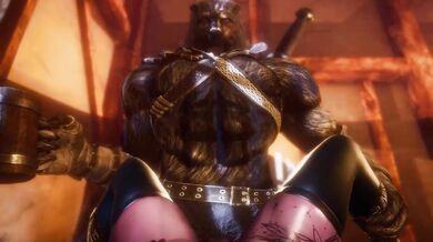 Blaidd, the legendary wolf-man, is caught in a steamy moment with a voluptuous purple-haired beauty. Watch as he takes her in every position possible, leaving her screaming for more.