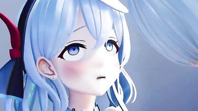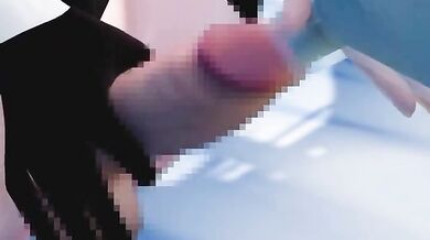 A futanari character with a fully functional set of female genitalia, paired with a male body and masculine features, is engaged in a sexually explicit act. The scene involves the futanari receiving oral pleasure from another individual while engaging in sexual intercourse.