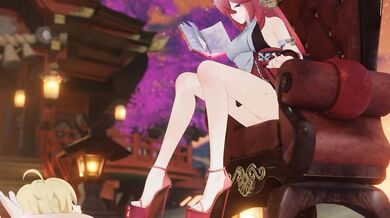 [Sexy Momokos] Yoimiya Gives Lumine a Blowjob