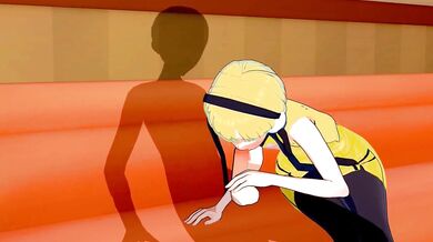 This hentai porn video description is rephrased as follows: A woman is seen taking off her sexy lingerie while she strips down to her underwear in a steamy shower scene. She then proceeds to masturbate herself with a vibrator, making passionate love to the device until she reaches a climax. Afterwards, she takes a break from the shower and gets on all fours, inviting two men to have their way with her from behind. The men take turns penetrating her from behind while she moans in pleasure, eventually reaching another orgasm.
