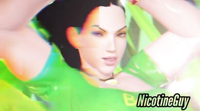 The hentai porn video features a tribute to the character of Laura Matsuda from Street Fighter V, with Kick Back by Chainsaw Man serving as the background music.