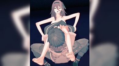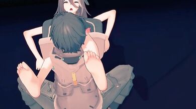 In this hentai porn video, we see Haru perched atop Ajutant's shoulders as he holds her up. The camera angle is from directly above them, allowing us to get a bird's eye view of the action. As Haru lifts her leg into the air, we can clearly see her pussy lips peeking out from underneath her skirt, and Ajutant's hands gripping onto her thighs. The scene is set in a winter wonderland, with snow falling softly around them as they engage in this intimate moment.