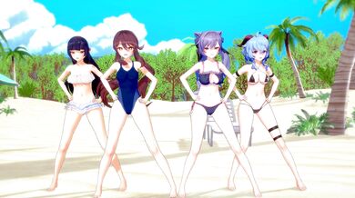 [Sexy Momokos] Yoimiya Gives Lumine a Blowjob
