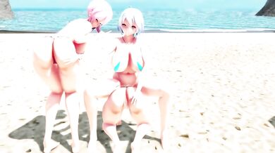 [Sexy Momokos] Yoimiya Gives Lumine a Blowjob