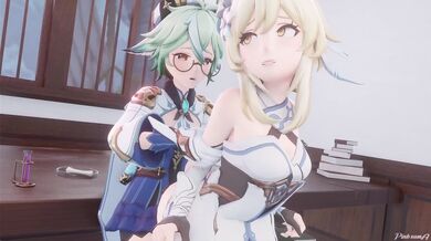 [Sexy Momokos] Yoimiya Gives Lumine a Blowjob