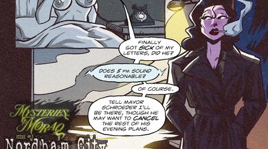 Mysteries of Moraq - Audio Dub Happy Halloween everyone! I hope you're all enjoying the spooky season in your own *bone* chilling way! It wouldn't feel right during my favorite holiday not to share a little treat for you all, so we've been working away on a little surprise for you to enjoy! Return to Nordham City as we revisit Vivian Berkin's first adventure with a fully produced audio dub! Headphones on for this one! ) **__Starring:__** @KittenVox as Vivian @IRecshun as The Mayor @KassioppiaVA as Dolores SFX/Editing by @TheSadisticDreamer Pages by @AtomicInkAfterDark